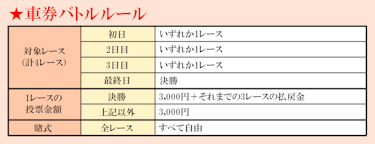 また、今回の企画に伴い「車券バトル優勝者予想キャンペーン」を実施しています。