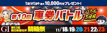 【優勝者を当ててtoreta+ をもらおう】 競輪祭「第10回車券バトル」バトル3日目