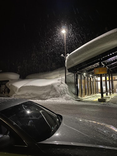 石川ではこのような雪の中でも、雪かきなどして少しでも乗れるようにして練習するときがあります。