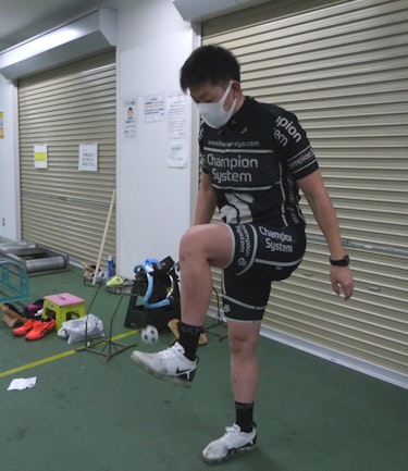 「高校時代、スケートのアップで使っている人がいて。自分も遊びで始めたのですが、競輪選手になってからもアップで使うようになりました。サッカーと言うよりは、セパタクローの感覚ですね」