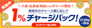 【11/25〜11/30】「入金/払戻金 残高」からのチャージ限定! もれなく1%チャージバック