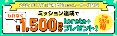【2024年10月に新規登録された方限定】ミッション達成で もれなく最大1,500円分のtoreta+ をプレゼント