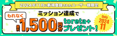 【2024年11月に新規登録された方限定】ミッション達成で もれなく最大1,500円分のtoreta+ をプレゼント