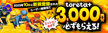 ※ミッション達成によるtoreta+ 付与は初回のtoreta+チャージが対象です。