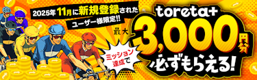 新規登録&簡単なミッション達成で投票に使えるtoreta+ を最大3,000円分プレゼント!