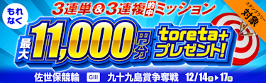 【12/14-12/17】佐世保競輪 GⅢ 3連単&3連複的中ミッション! 条件達成でもれなく最大11,000円分のtoreta+ プレゼント