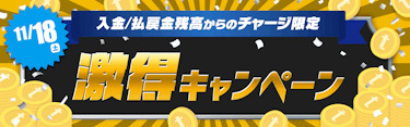 11/18(土)は「入金/払戻金 残高」からのチャージ限定で、1日のチャージ総額に応じてもれなく1%チャージバック!
