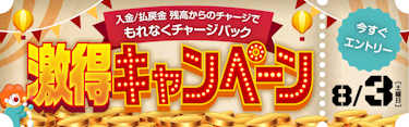 【8/3(土)】入金/払戻金残高からのチャージで もれなく1%還元! 激得キャンペーン