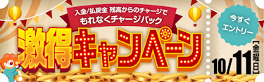 【10/11(金)】入金/払戻金残高からのチャージで もれなく1%還元! 激得キャンペーン