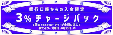 6/13(木)限定で「銀行振込」からの1回の toreta+ チャージ最大額に応じた額の3%をチャージバックします。