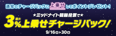 9/16(金)~9/30(金)の間、ミッドナイト競輪に10万円以上の投票でチャージバックが発生!