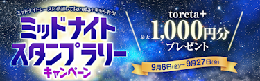 9月に実施されるミッドナイト3連単的中ミッションにエントリー&投票いただいた方にtoreta+ をプレゼントいたします。