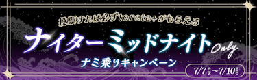 【7/7-7/10】必ずtoreta+ プレゼント! ナイター・ミッドナイト限定『ナミ乗りキャンペーン』