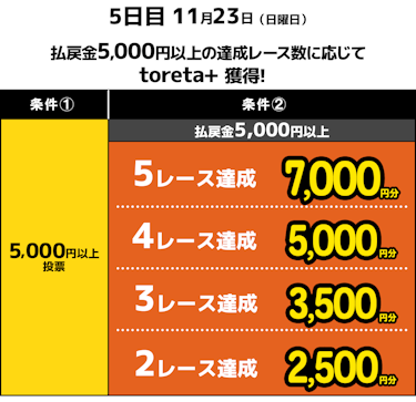 - レース中止・打切の場合、キャンペーンは開催日により調整となります。