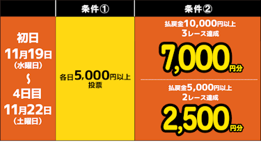 ※条件①、条件②ともにワイド除く全賭式が対象です。