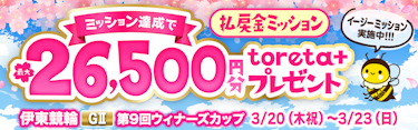 ・払戻金30,000円以上を2レース達成でもれなくtoreta+ 10,000円分プレゼント🎁