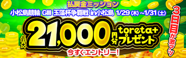 小松島競輪G3 払戻金ミッション 最大toreta+ 21,000円分GET