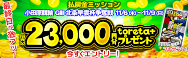 Wチャンス賞あり!! 小田原競輪G3 払戻金ミッション 最大toreta+ 23,000円分GET