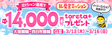 【3/13-3/16】大垣競輪・四日市GⅢ 払戻金ミッション 条件達成でもれなく最大toreta+ 14,000円分プレゼント
