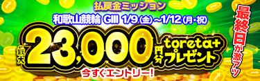 和歌山競輪G3 払戻金ミッション 最大toreta+ 23,000円分GET