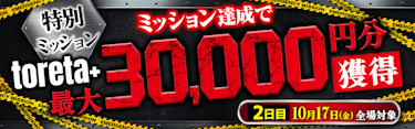 【2日目】toreta+が最大30,000円分もらえる 全場対象の特別ミッションを見逃すな