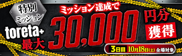 【3日目】全場対象ミッションに挑戦しよう 最大30,000円分のtoreta+のチャンス