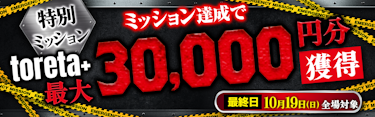 【最終日】全場対象ミッション 最大30,000円分toreta+を掴み取るラストチャンス