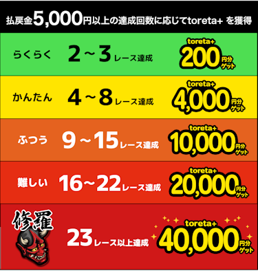 難易度「修羅」に挑みtoreta+ 40,000円分を掴み取れ!