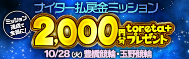 ナイターで払戻金ミッション!条件達成で2,000円分のtoreta+ をゲット
