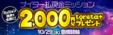 ナイターで払戻金ミッション!条件達成で2,000円分のtoreta+ をゲット