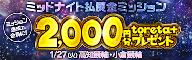 ミッドナイトで払戻金ミッション!条件達成で2,000円分のtoreta+ をゲット