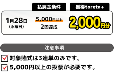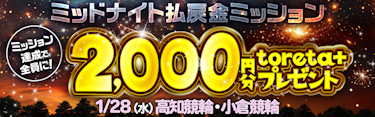 ミッドナイトで払戻金ミッション!条件達成で2,000円分のtoreta+ をゲット