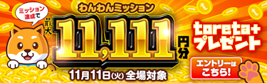 【11月11日だけのわんチャンス!】ミッション挑戦で最大11,111円ゲットのチャンス!