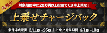 3/11(土)〜3/25(土)の期間中に合計20万円以上投票すると、4月1日(土)~10日(月)の投票への上乗せチャージバックをゲット!