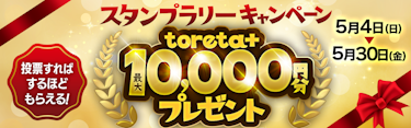 投票すればするほどtoreta+ プレゼント額が上がるので、参加条件をご確認の上、みなさま奮ってご参加ください!