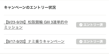 現在実施中のエントリーキャンペーンのエントリーステータスが表示されます。