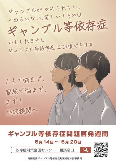 ギャンブル等依存症対策基本法において、毎年5月14日~20日はギャンブル等依存症問題啓発週間に定められています。